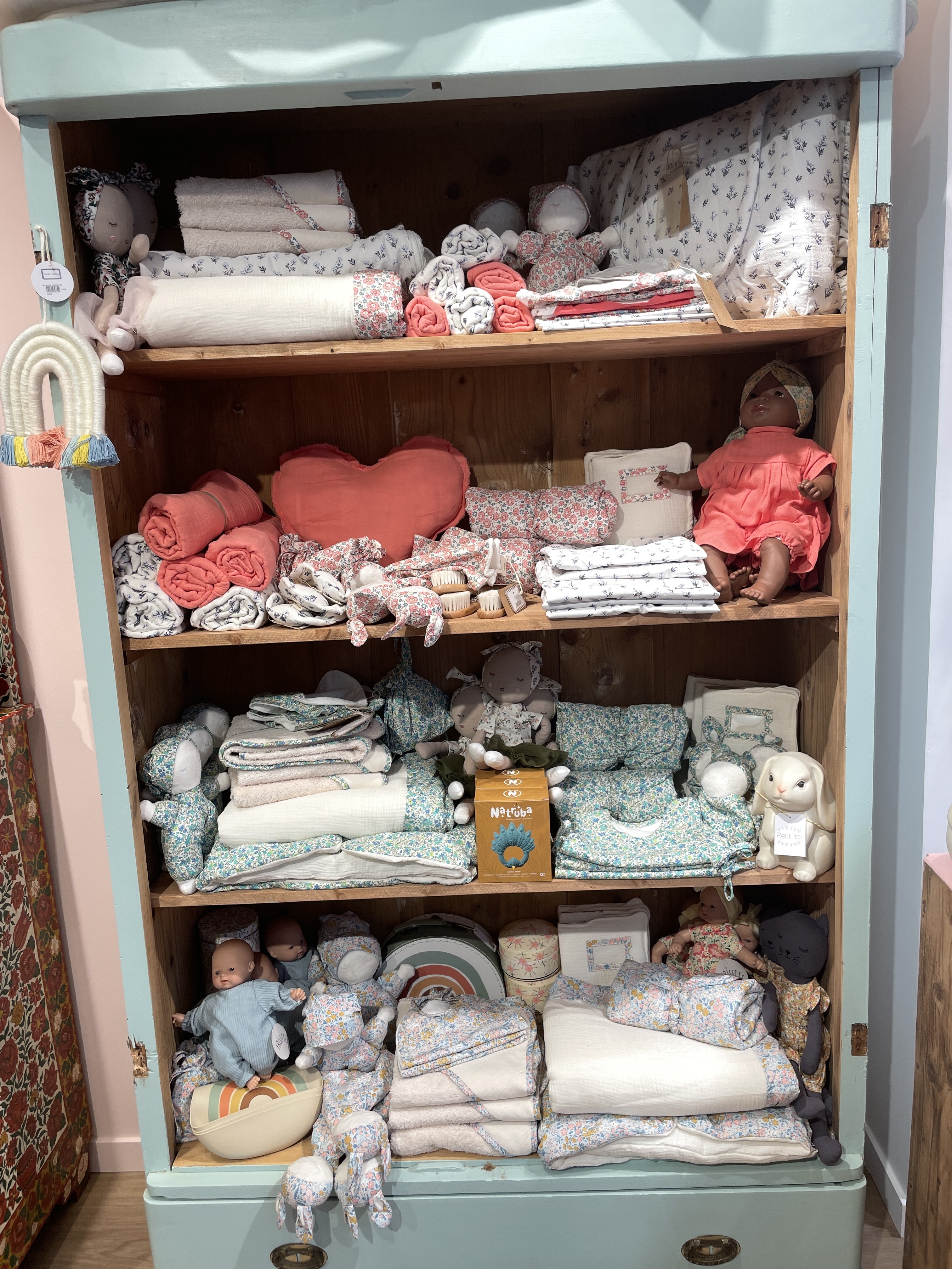 Boutique avec tout ce qu'il faut pour les bébés et jeunes enfants, tout est beau et pratique !