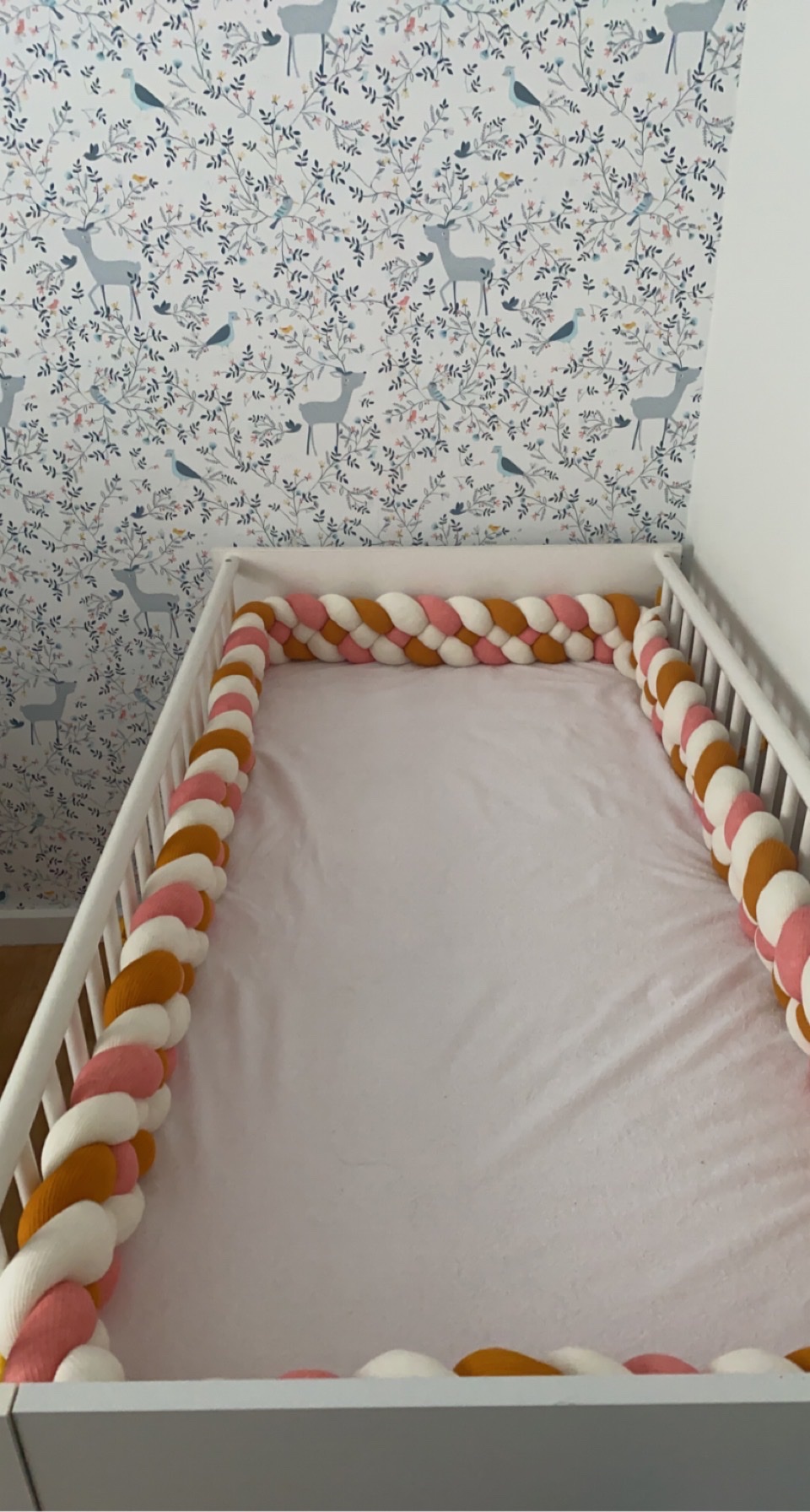Tresse commandée pendant ma grossesse pour préparer le petit nid douillet de mon fils. Large choix de coloris qui rend parfois la tâche difficile car on voudrait tous les associer lol plus sérieusement c'est un travail fait main et de très bonne qualité. La tresse est respirante donc aucun risque pour bébé. Mon fils dort très souvent collé à sa tresse et cela semble lui apporter une certaine sécurité et confort et cela me ravis de voir qu'il dort bien. Personne très agréable et bienveillante.