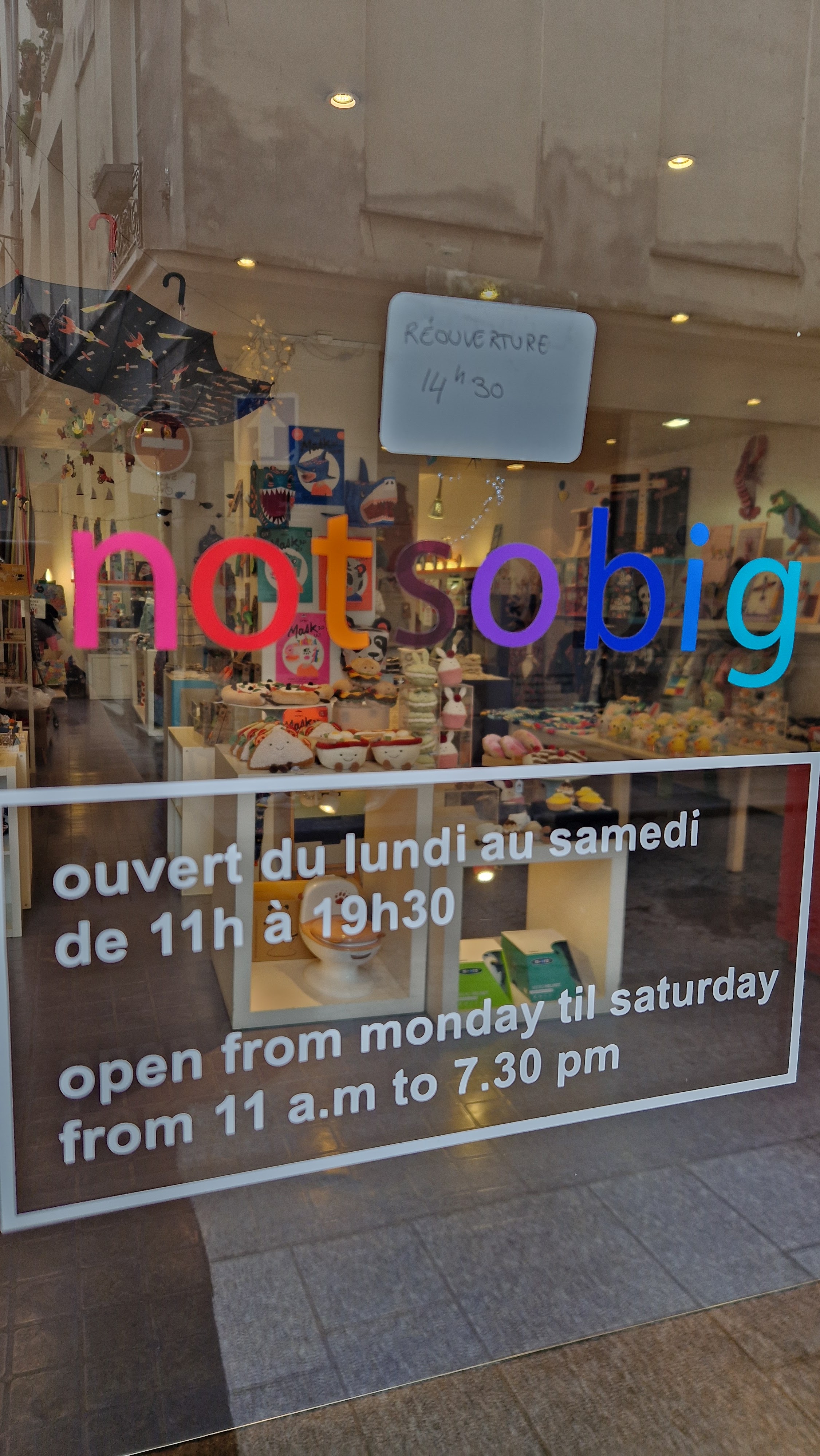 Voici toutes les informations sur le Magasin pour enfants Notsobig jouets cadeaux enfants prêt à porter créateurs qui ce trouve au 38 Rue Tiquetonne, 75002 Paris (75). Sur cette fiche vous trouverez les photos, l'adresse, les horaires d'ouverture, le numero de téléphone et les avis clients.Vous pouvez églement rédiger un avis si vous le souhaitez en bas de page.